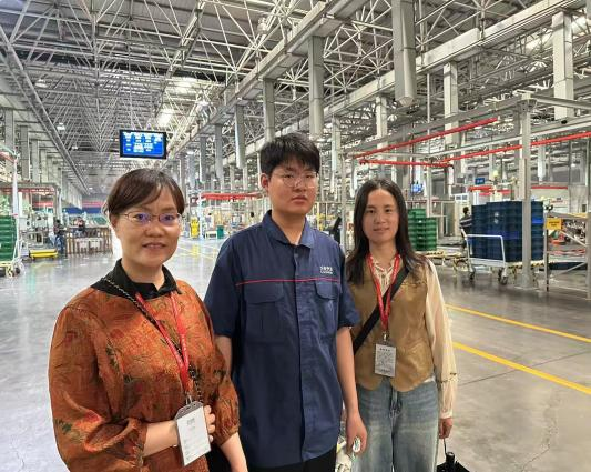5月19日上午,孙丽娜和邢梦怡参观了新能源动力NE工厂。在工厂里,孙丽娜与顶岗实习的员工进行了交流,详细询问员工的工作内容、遇到的问题以及收获。孙丽娜鼓励员工们要珍惜实习机会,将所学专业知识运用到实践中,在实践中不断学习和提升自己。孙丽娜还特别强调,遇到困难不要害怕,要积极与企业导师和公司老师沟通,共同解决问题。