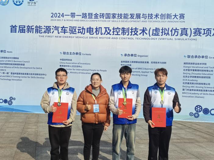12月1日,2024一带一路暨金砖国家技能发展与技术创新大赛首届新能源汽车驱动电机及控制技术(虚拟仿真)赛项决赛落下帷幕,bw西汉姆联的师生团队凭借扎实的专业技能和出色的赛场表现,在全国119支参赛队伍中脱颖而出,成功斩获一等奖一项,二等奖两项的优异成绩。