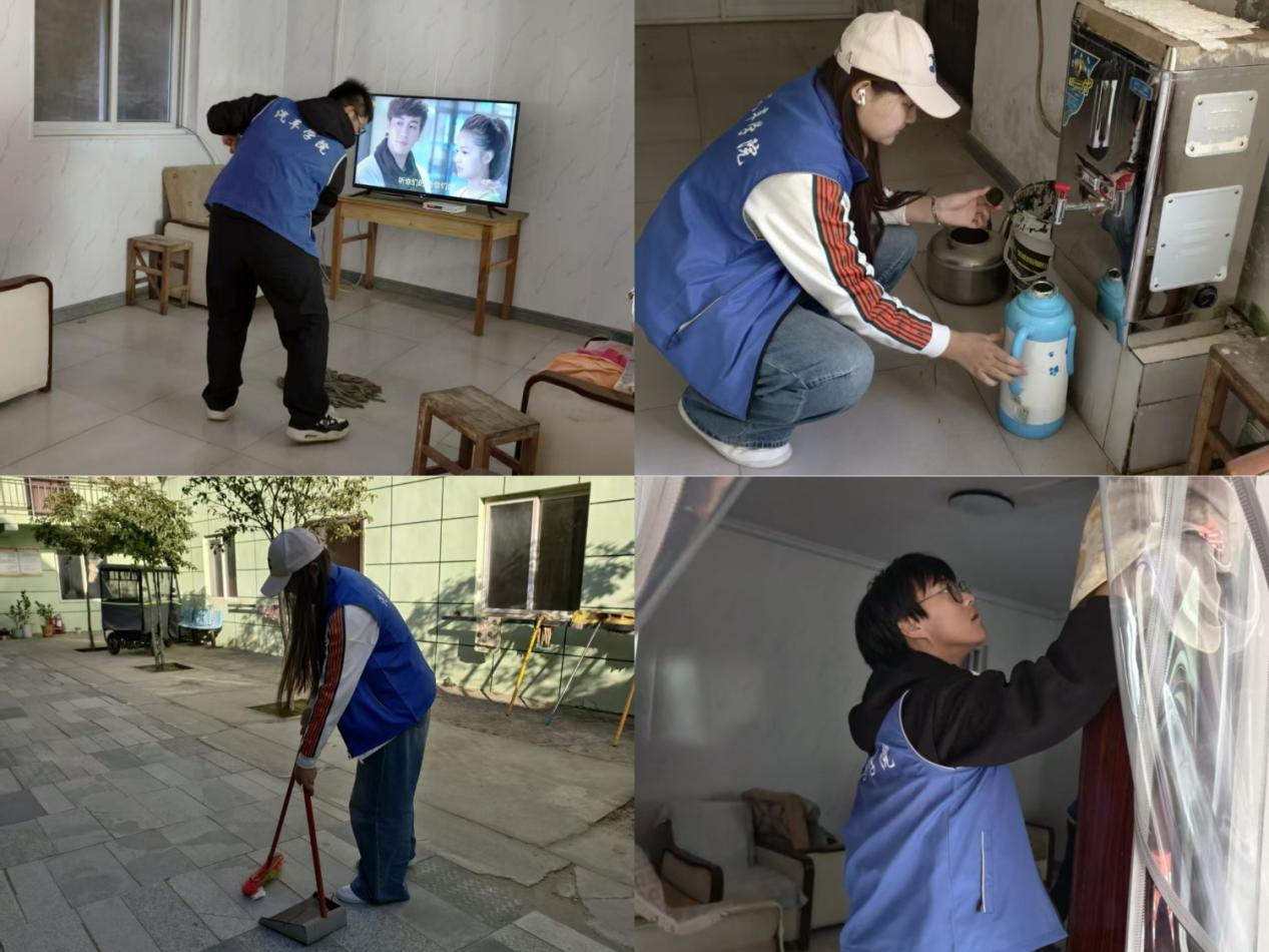 在陪伴过程中,主动向经理提出为颐养院打扫卫生。大家积极行动:有的同学拖拭房间地面,有的擦拭着窗户,有的为绿植浇水。每一位志愿者都干劲十足,为老人们营造了一个更加整洁、舒适的生活环境,用实际行动诠释着责任与担当。