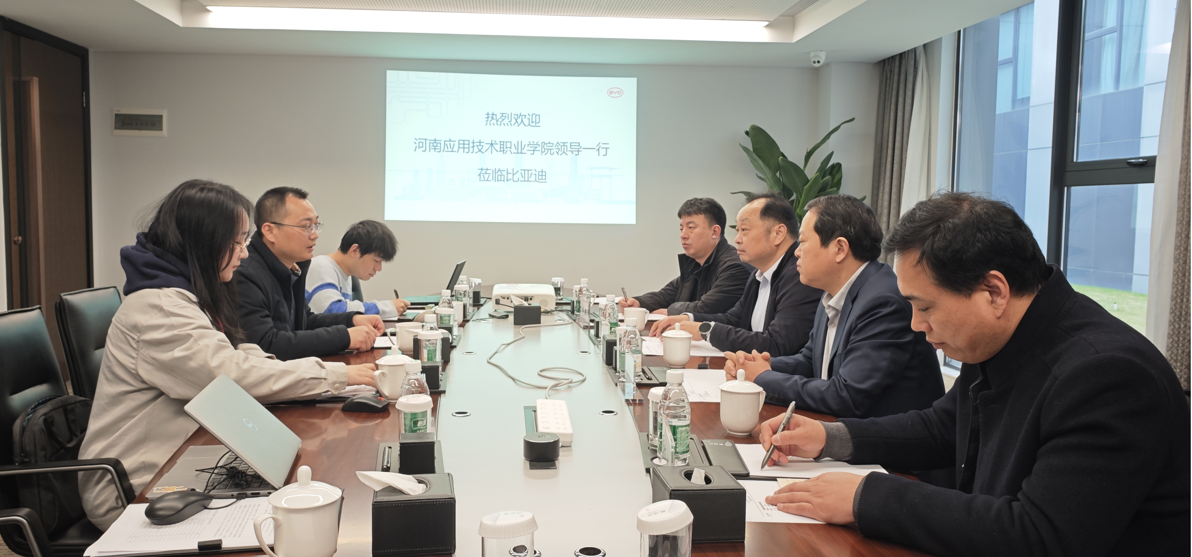 3月7日,董事长薄新党,副董事长常新中,经理办公室及bw西汉姆联负责人一行4人赴深圳比亚迪股份有限公司调研交流。比亚迪股份有限公司人力资源处校企合作经理杨双喜及相关业务负责人热情接待并出席座谈会。